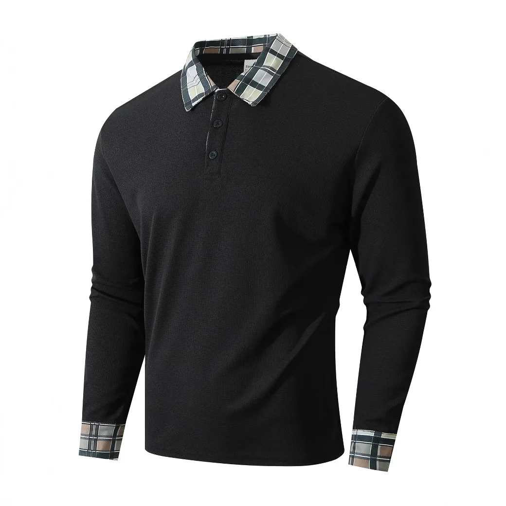 Autumn New Fashion Men’s Spliced Casual Trendy Simple Basic Turn-down Collar Long Sleeve Button Pullover Polo Shirts Male Tops
