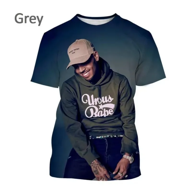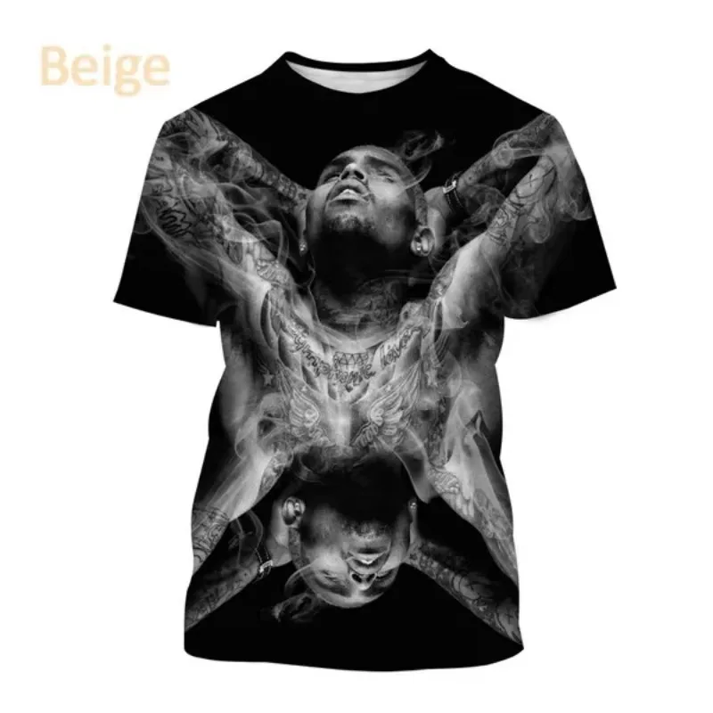 Fashion Men’s Rapper Chris Brown 3D Print T Shirt Summer Casual Oversized T-shirt Personalized Harajuku Street Short Sleeve Tops