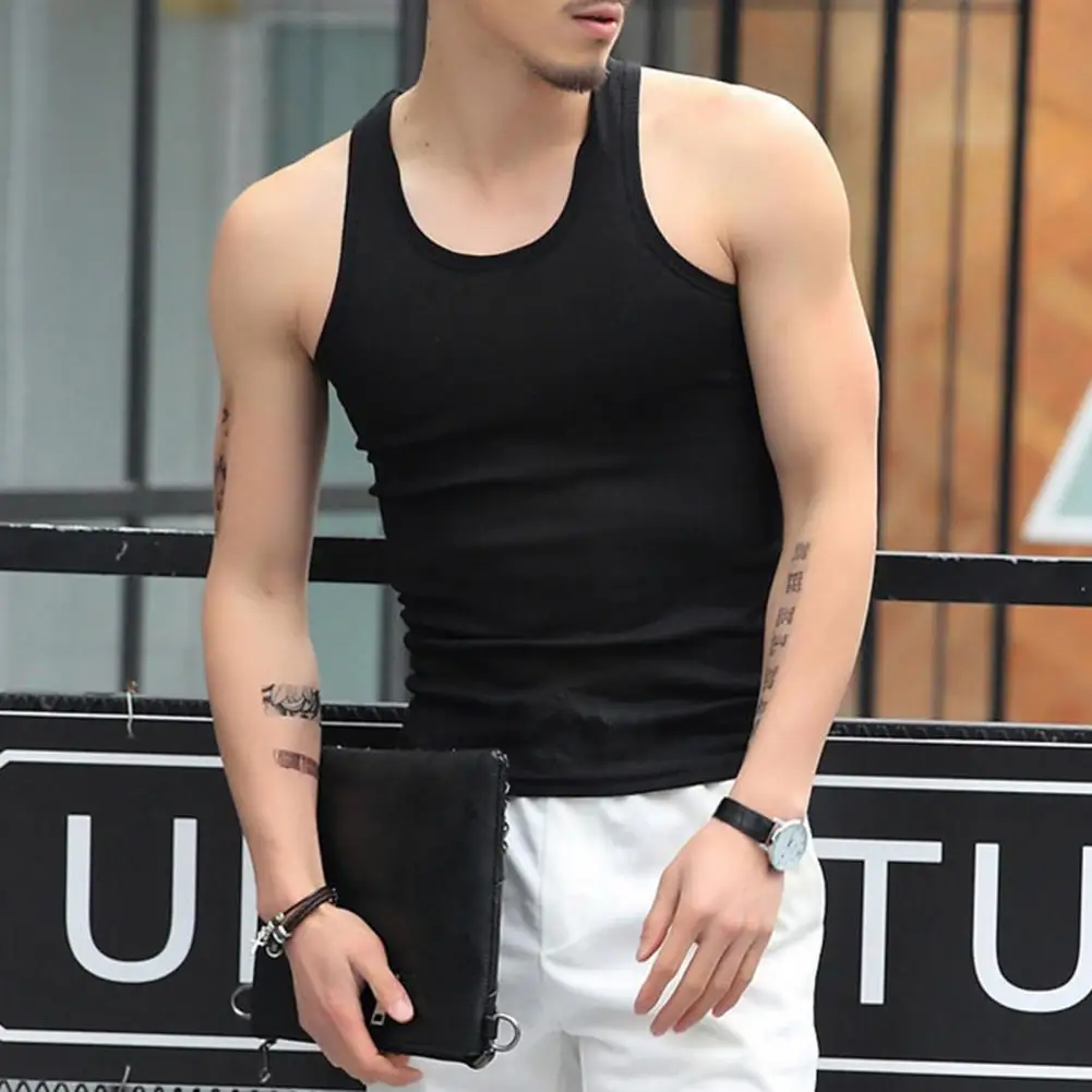 Men O-neck Sleeveless Tank Tops Solid Color Slim Fit Fitness Gym Workout Undershirt Bodybuilding Running Vest